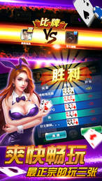 这是一款正宗好玩的炸金花棋牌游戏,游戏内容集竞技性、技巧性、合作性于一 身,完善的规则体系和智能防作弊系统为你营造最舒适的多人公平竞技娱乐环境,玩家可以免费开房,好友熟人朋友网友,随时随地约一局。