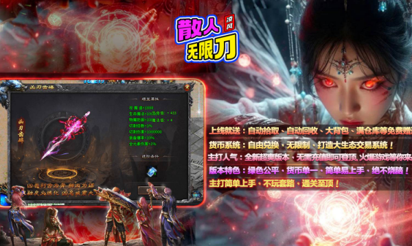 1、无限刀攻速系统,突破传统攻速上限,通过装备叠加和技能buff可实现极致攻击频率,刀光剑影特效满屏,体验割草般爽快战斗。